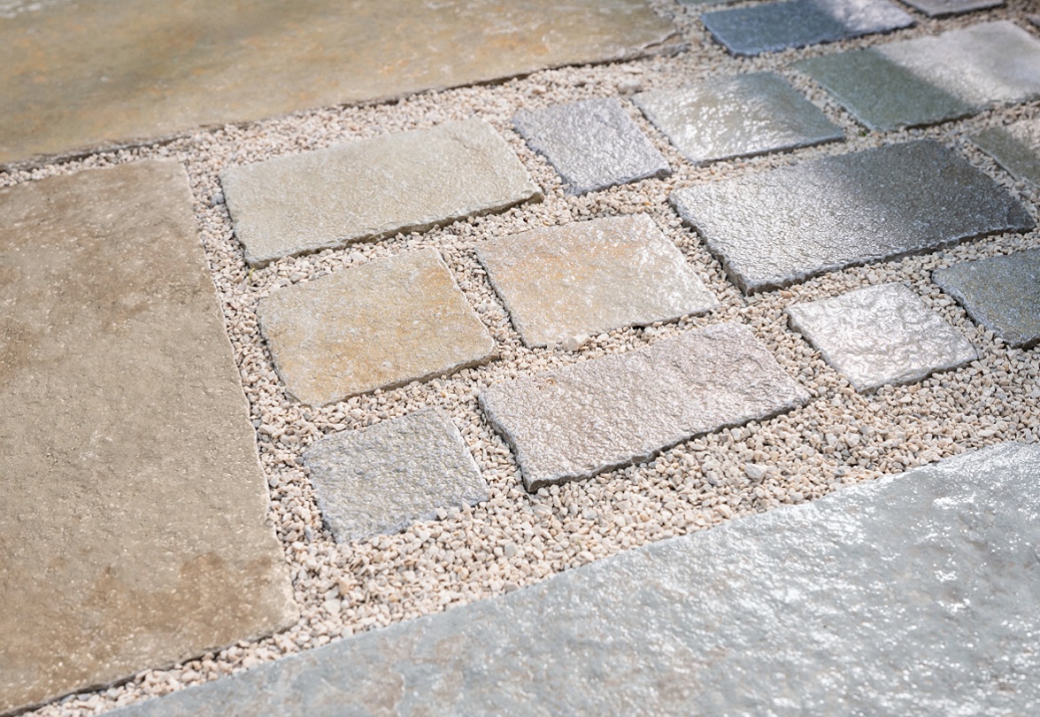Works With: Raj Beige flagstone, plus Raj Beige cobbles can also work indoors with our Jaipur, Munster & Leopold Limestones.